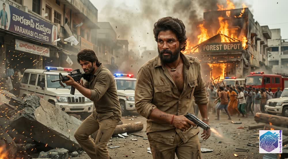 Allu Arjun β The Scars of the Sovereign… He stands unyielding amidst the embers, his face a map of violent history and ruthless ambition. His grip on the pistol is casual yet lethal, a man who has conquered the underworld but now finds himself hunted by the very fires he started… his gaze piercing through the ash, daring the world to tear him from his throne.