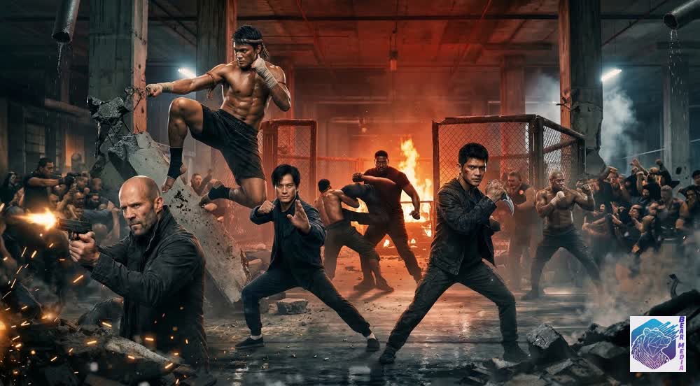 From the shadowy balconies above, the true architect of the slaughter reveals himself. A monolithic crime boss, bathed in the red emergency light, unleashes an army of heavily armed mercenaries and feral pit fighters into the arena. It is not a tournament; it is an execution designed to erase three rogue elements in one night. The clash of traditional martial arts against overwhelming, industrialized violence forces an impossible alliance. The three lethal specters cannot simply fight their way out individually… they must synchronize their vastly different methods of destruction.
