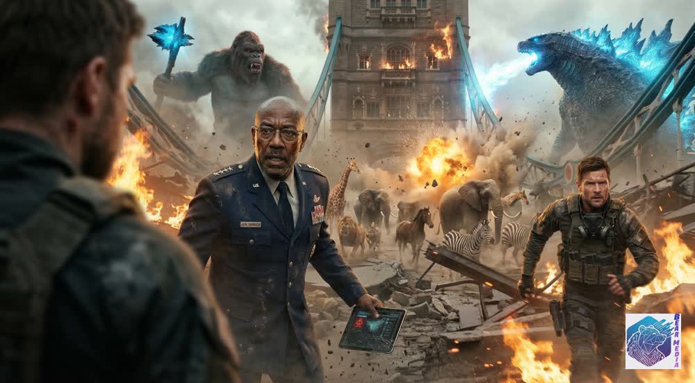 The ash falling over the fractured spine of the Tower Bridge does not look like snow; it looks like the dying breath of human architecture. It is a world where the laws of nature have been violently rewritten by the titans that slumbered beneath them, where the roar of a jet engine is drowned out by the earth-shattering bellow of gods made flesh. The sky is a bruised canvas of smoke and displaced lightning. “A visually staggering, emotionally terrifying testament to humanity’s sudden, devastating demotion on the food chain,” observes the international survival broadcast, as the remnants of global defense forces attempt to manage an apocalypse they cannot shoot. Here, the line between military strategy and absolute futility is measured in the heavy, thunderous footsteps of the kings.