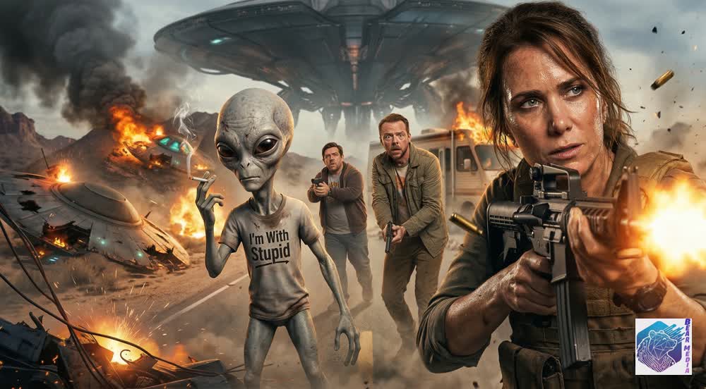 The oppressive heat baking the Nevada asphalt does not carry the scent of sagebrush; it reeks of burnt ozone, spilled coffee, and the undeniable panic of a road trip gone violently off-script. It is a desert highway that was supposed to lead to Comic-Con, but has instead become ground zero for an intergalactic misunderstanding of apocalyptic proportions. The sky above the dusty plains is shadowed not by clouds, but by the terrifying geometry of an alien armada. “A relentless, absurdly high-stakes collision of stoner logic and absolute cosmic annihilation,” reports the underground sci-fi wire, watching a group of spectacular underachievers forced to save a world they barely participate in. Here, the line between saving the galaxy and finding a clean bathroom is hilariously blurred.