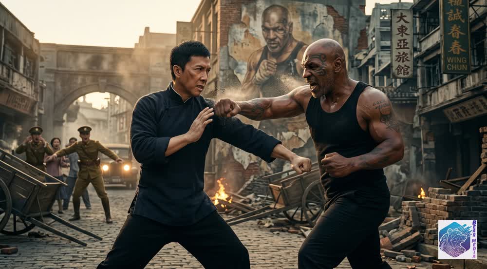 The marketplace becomes a blur of flying limbs and shattering glass as the two titans finally meet in the center of the crossfire. It is not just a fight; it is a friction of worlds, a grinding of the ancient against the industrial. Amidst the roar of the invading forces and the rhythmic crack of breaking wood, a local wire service dispatch bleeds through the static: BREAKING: CIVIL UNREST REACHES CRITICAL MASS AS LOCAL MILITIA CONVERGES ON THE WING CHUN DISTRICT. They are trapped in a localized hell, a master and a brawler trading blows that carry the weight of nations, their breathing the only rhythmic thing left in a city that has lost its pulse.