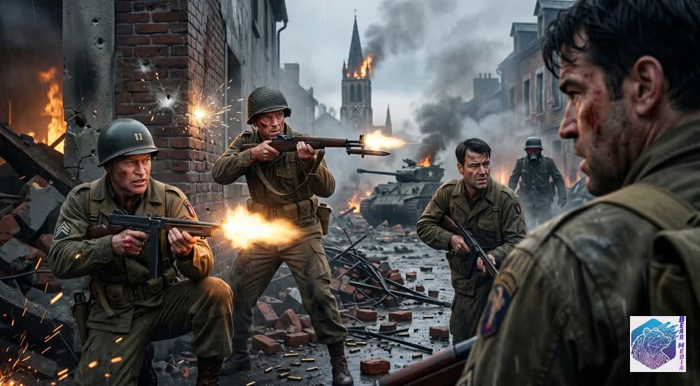 The sky over the fractured European town bleeds in suffocating hues of ash and cordite, torn apart by the relentless grind of close-quarters warfare. In what critics are already calling a visceral, heart-stopping masterpiece of combat cinema, the sanctuary of a peaceful street has been reduced to a jagged corridor of ruin. A burning cathedral spire casts frantic, flickering shadows over a battlefield where tactical manuals have been burned to cinders. As sparks rain down from shattered brick walls and allied armor stalls in the debris, a desperate unit of airborne infantry finds themselves pinned in the crosshairs of a faceless enemy. It is no longer a battle for strategic ground; it is a desperate, gasping fight for the man standing next to you.