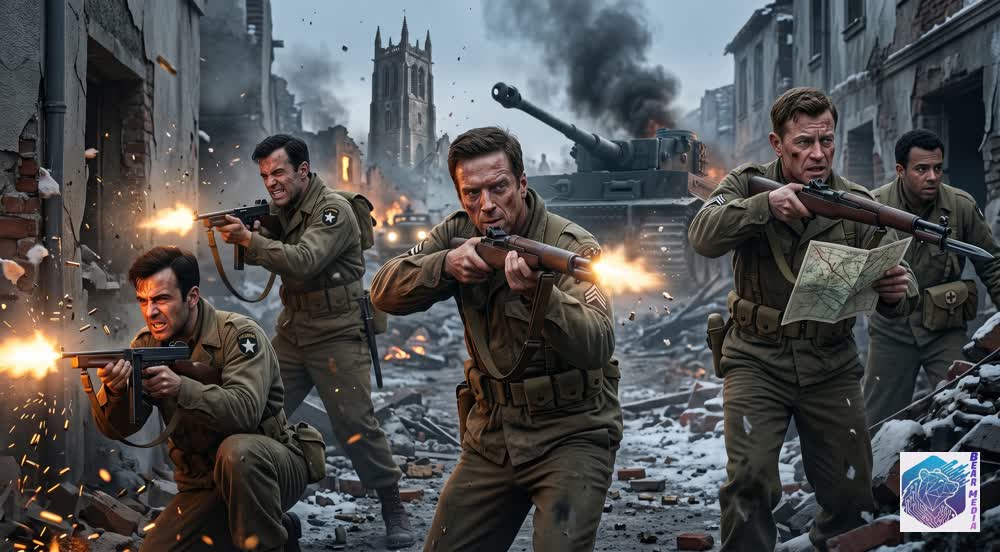 π«οΈ The winter air is thick with the scent of wet brick and cold iron, a haunting fog that refuses to lift from the ruins of a broken Europe… βͺ Beneath the hollowed-out spire of a silent church, the cobblestones are buried under the weight of falling snow and the jagged remains of a world that once was. πͺ These men carry more than just their rifles; they carry the heavy, unspoken weight of a brotherhood forged in the fires of D-Day and tempered in the frozen foxholes of Bastogne. π This is the final push, the desperate, visceral struggle to reclaim humanity from the jaws of a mechanical nightmare.